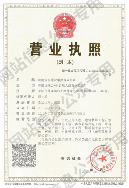 河南寶盈建設集團有限公司成立于 2010年7月2日,注冊資本金15000萬元,是擁有建筑、市政、水利水電、裝飾裝修、防水保溫及園林綠化施工為一體的多元化、集團化的建筑企業,具有建筑工程施工總承包一級、裝飾裝修一級、防水防腐保溫一級、地基基礎工程專業承包二級、古建筑專業承包二級、環保工程專業承包二級、市政施工總承包二級、水利水電施工總承包二級、建筑幕墻二級、消防工程施工二級,特種作業不分等級等資質。寶盈建設于2018年率先通過ISO9001質量管理體系、ISO14001環境管理體系、ISO45001職業健康安全管理體系認證。寶盈建設多元化發展,旗下擁有混凝土生產廠、勞務公司、商貿公司、門窗加工廠等獨立發展的法人公司。 寶盈建設自成立以來,建立了一支管理先進、技術實力過硬、綜合素質強的專業技術團隊,擁有一大批大型施工機械設備,并擁有專業作業隊伍,施工能力有保障,年施工能力達100萬平方米 。 寶盈建設本著“誠信、責任、卓越、共贏”的企業宗旨,秉承“寶之精工,盈在品質”的企業精神,牢...